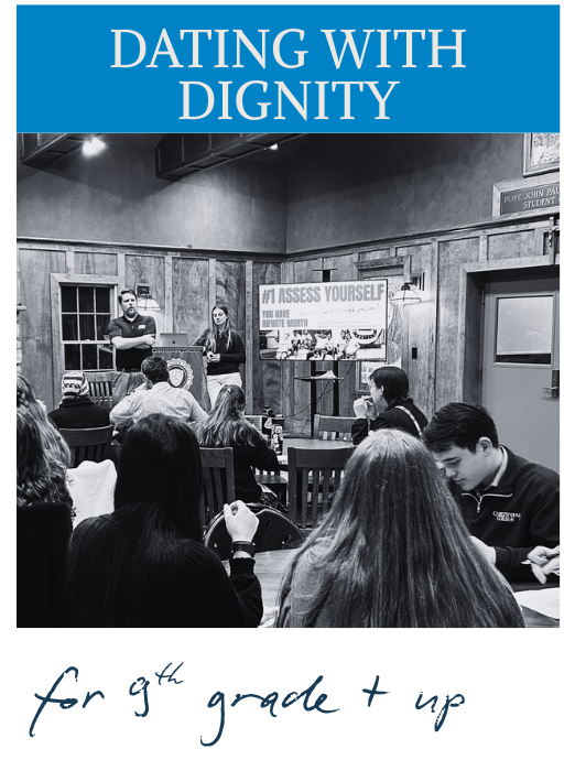 This slideshow presentation walks students through ten tips on how to navigate today’s dating scene. Drawing from research, personal testimonies, and theTheology of the Body, our speakers provide a framework for how young people can enter meaningful relationships that ultimately pave the way for a happy marriage.