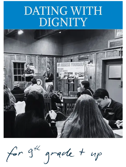 This slideshow presentation walks students through ten tips on how to navigate today’s dating scene. Drawing from research, personal testimonies, and the Theology of the Body, our speakers provide a framework for how young people can enter meaningful relationships that ultimately pave the way for a happy marriage.